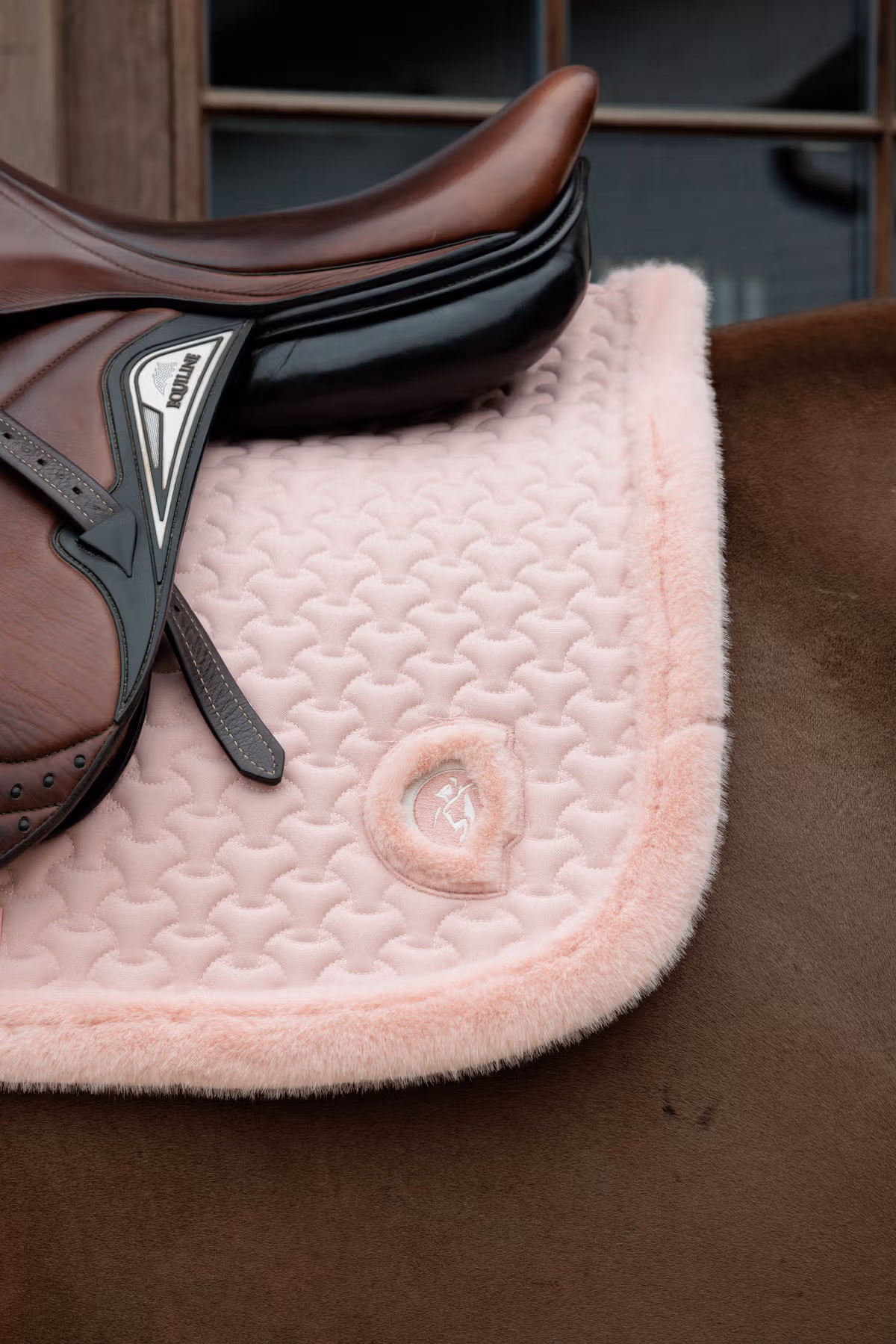 Czaprak Fake Fur wyróżnia urocza, puchata lamówka i trójwymiarowe, puchate logo. Dodatkowo uwagę zwraca oryginalne pikowanie czapraka. Jest anatomicznie wyprofilowany i bardzo dobrze się układa na końskim grzbiecie. Nie uciska kłębu i nie przesuwa się.