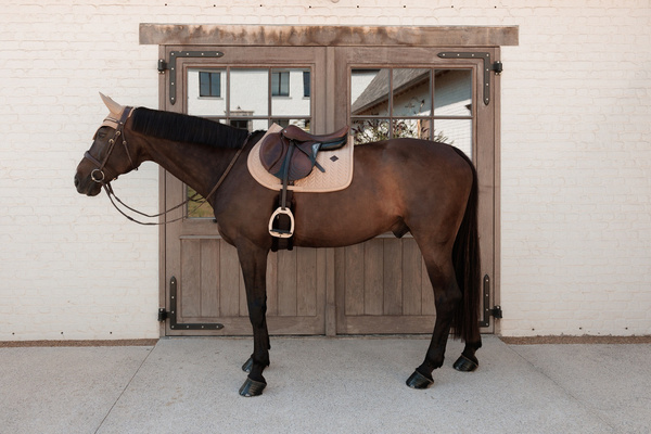 Aksamitny czaprak z oryginalnym pikowaniem to nowość od firmy Kentucky, znanej z wysokiej jakości, profesjonalnych produktów i awangardowego designu. Dyskretne, miniaturowe perełki nadają elegancki wygląd i blask.